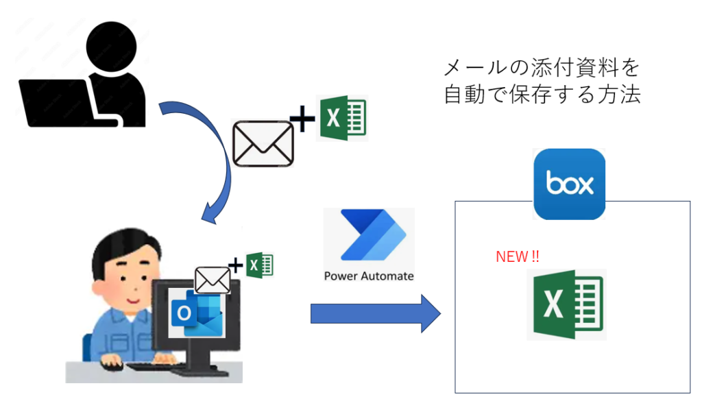 ・業務のひとつに他部署から送られてきたメールの添付資料を名前を変えてBOXに保存するだけの単純作業がありました。これはPowerAutomateで自動化することですることが出来ると考え、作成してみました。